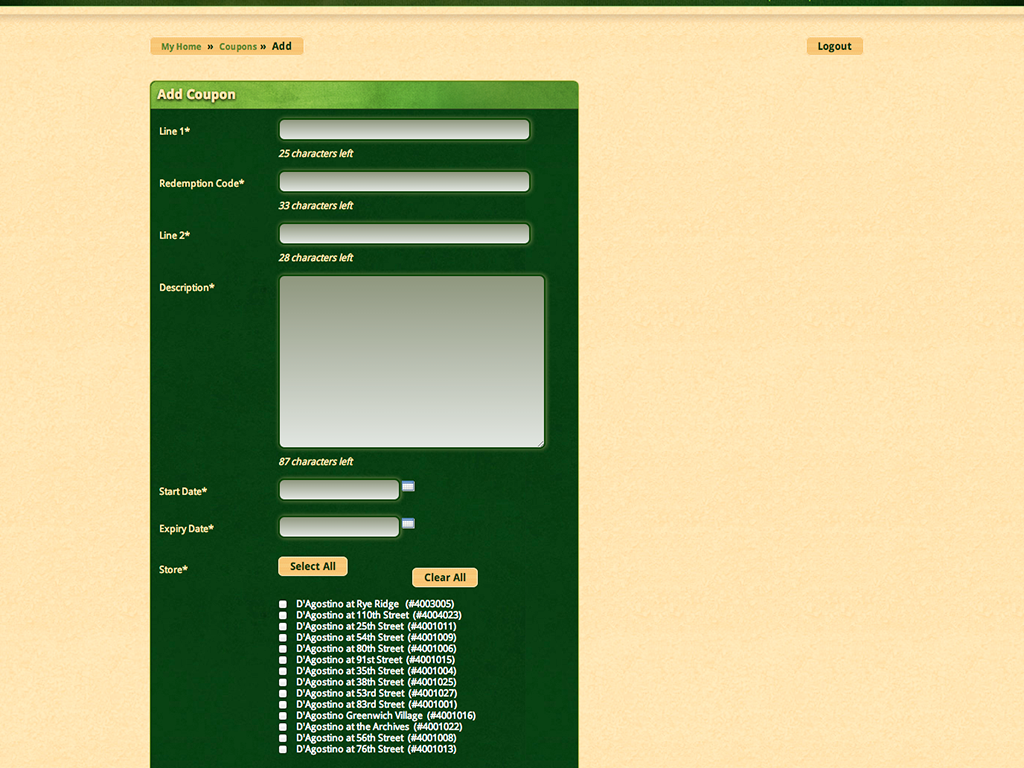so it was a single upload and they could be queued in advance by date range. Coupons only required text entry from the Merchant and were auto formatted