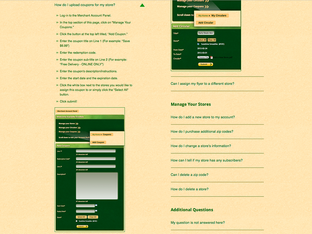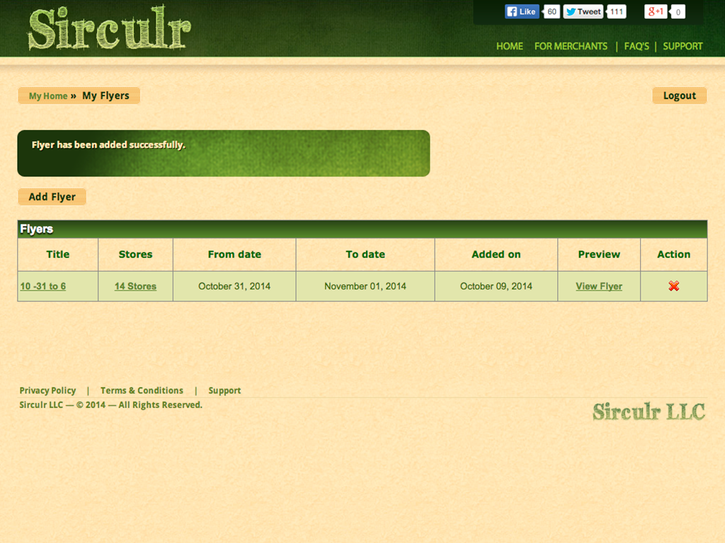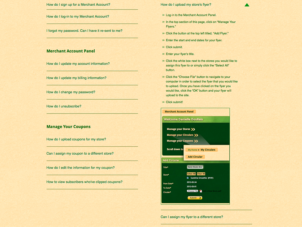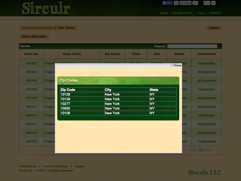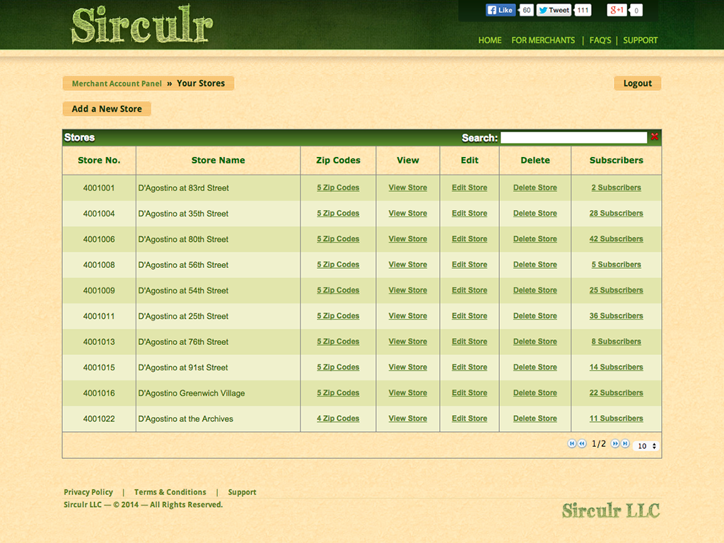 This is where the Merchants could upload their Weekly Circulars, Coupons and view Statistics on Users and Visits etc.
