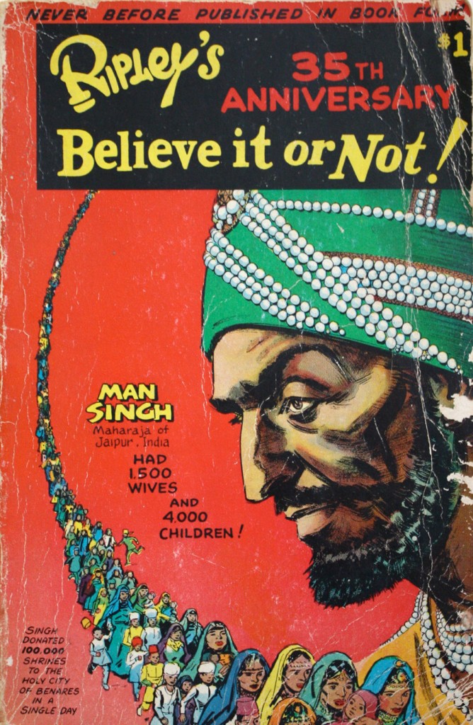 Love the illustration, that face is wild! Don’t know who did the art…but Man Singh, more concubines than wives I’d say, but 4000 kid’s, wow, Ripley’s had some fun in the early years with their facts!